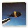 Enroulage fourni d'une pincée de poils de queue de chevreuil noirs suivi de jaunes suivi de noirs. Tailler à la formegénérale d'un bourdon