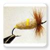 Poils de chevreuil ou caribou taillé avec une petite partie de chevreuil (jaune entre deux parties de chevreuil brun).