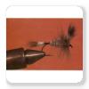Poils de renard gris attachés pour que les pointes soients vers l'avant, redresser ensuite mais pas complètement et séparer en deux parties égales. Longueur de l'aile égale à la longueur de la hampe ( de l'oeil jusqu'au début de la courbure)