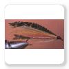 Quelques poils de queue de veau teinte rouge, sur montées de quelques poils d'une queue de chevreuil teinte jaune,par-dessus lesque sont attachés des poils bleus d'une queue de chevreuilde et 6 fibres de sabre de paon.