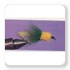 2 hackle de selle vert irlandais recouvrantle bout de l'enroulement de la laniere et formant les pattes avant angulé 45 degré vers l'arrière