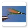 3 pincées successives (de même longueur et ne dépassant pas la courbure de l'hameçon) de poils de chevreuil ou queue de veau. Attachez dans l'ordre et superposées une pincée teint vert ,une pincée orange et une pincée vert
